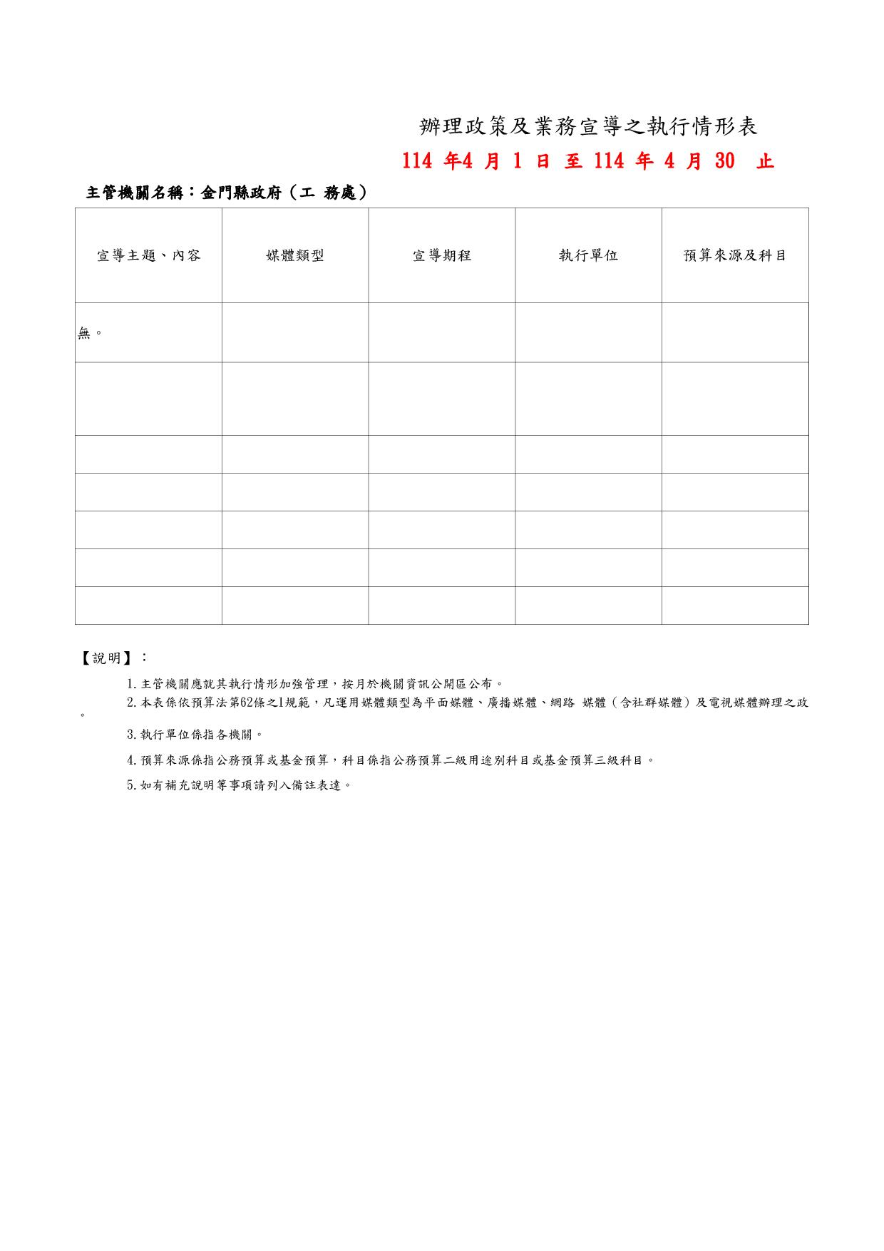 辦理政策及業務宣導之執行情形表114年4月份